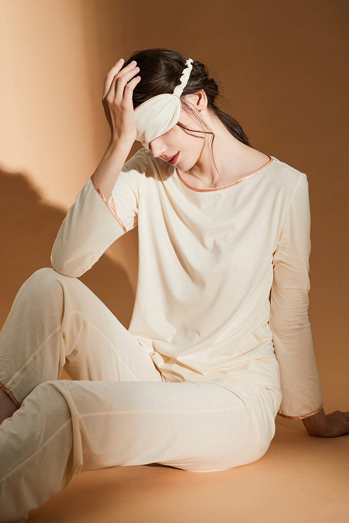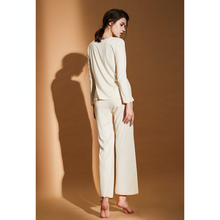 Spring and Autumn Long-Staple Cotton Long-Sleeved Pajamas Two-Piece Women's Homewear Suit Light Fashion