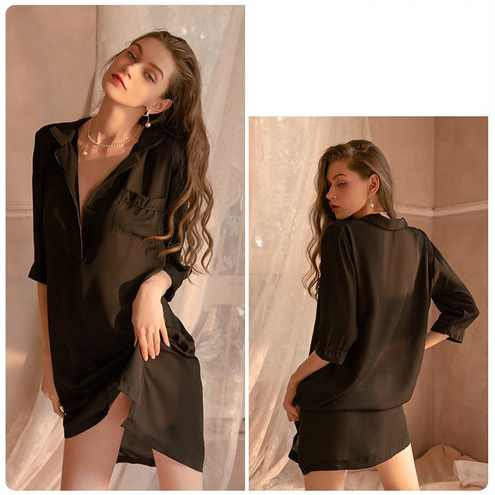 Boyfriend Style Shirt Sexy Chiffon Translucent Nightdress