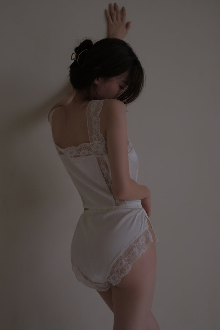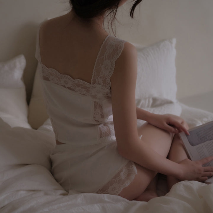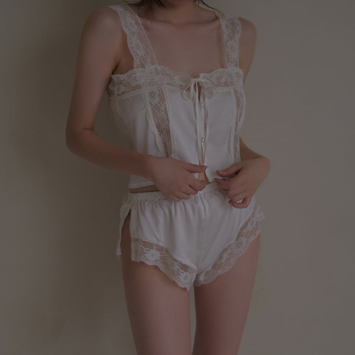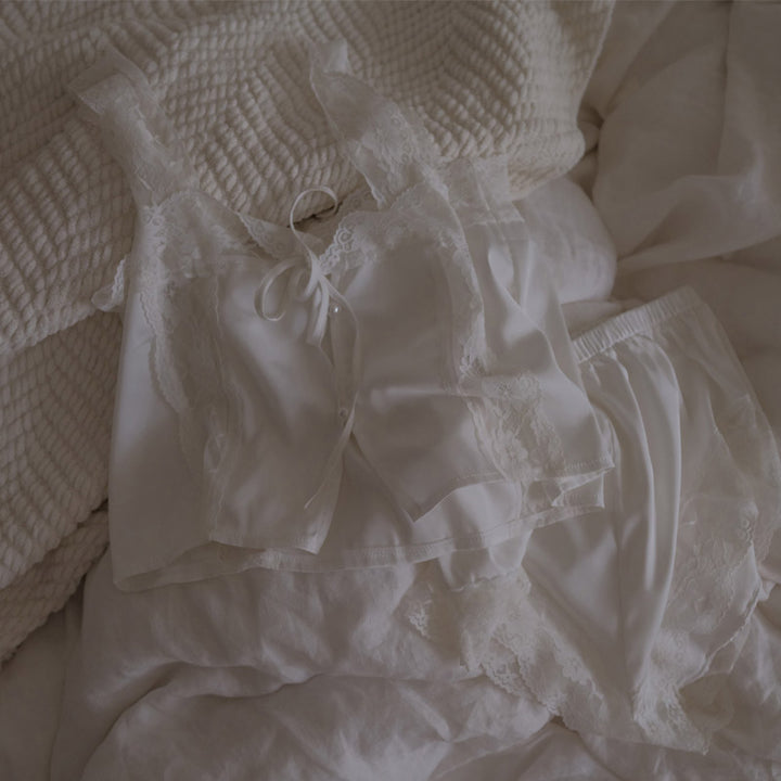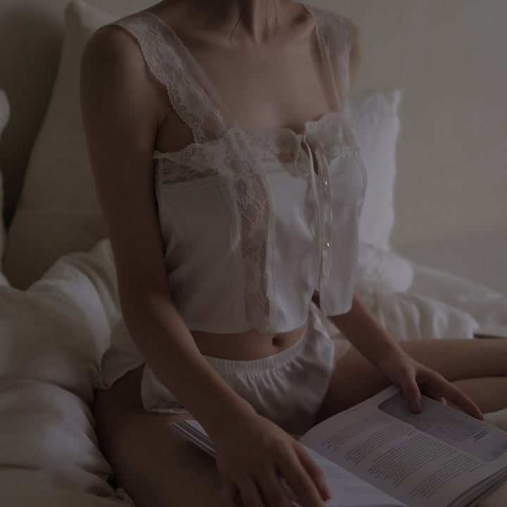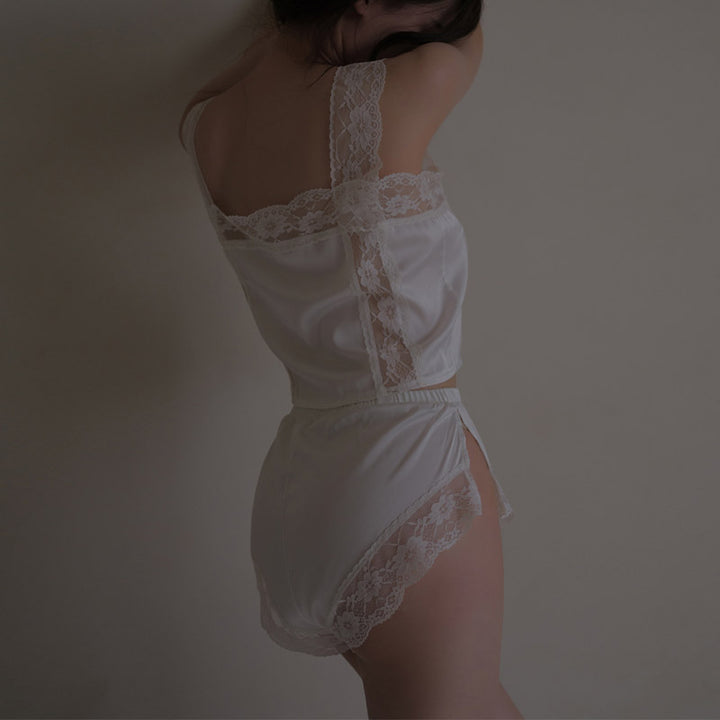 Cream White Chocolate Style Sexy Square-Neck Satin Shorts Pajama Set