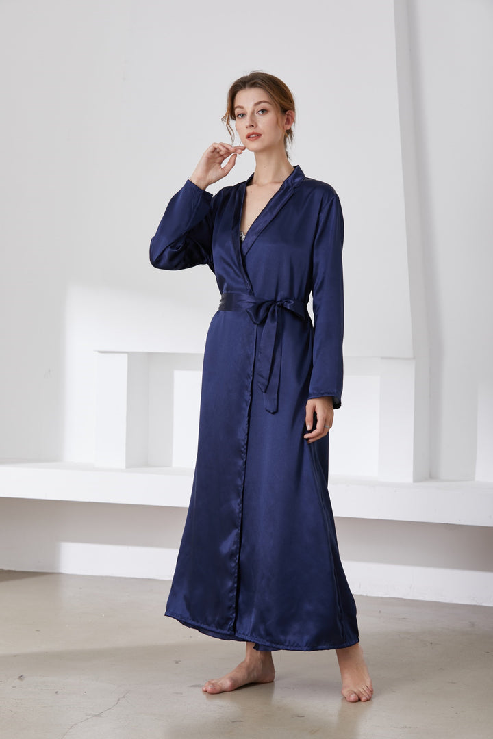 Lapel Long Ice Silk Robe Women's Sexy Pajamas Homewear
