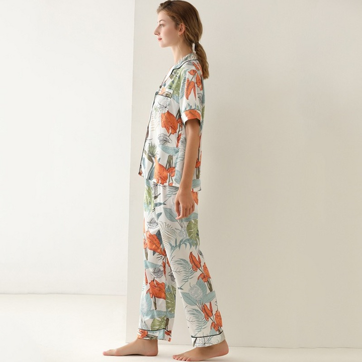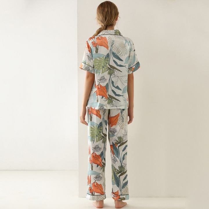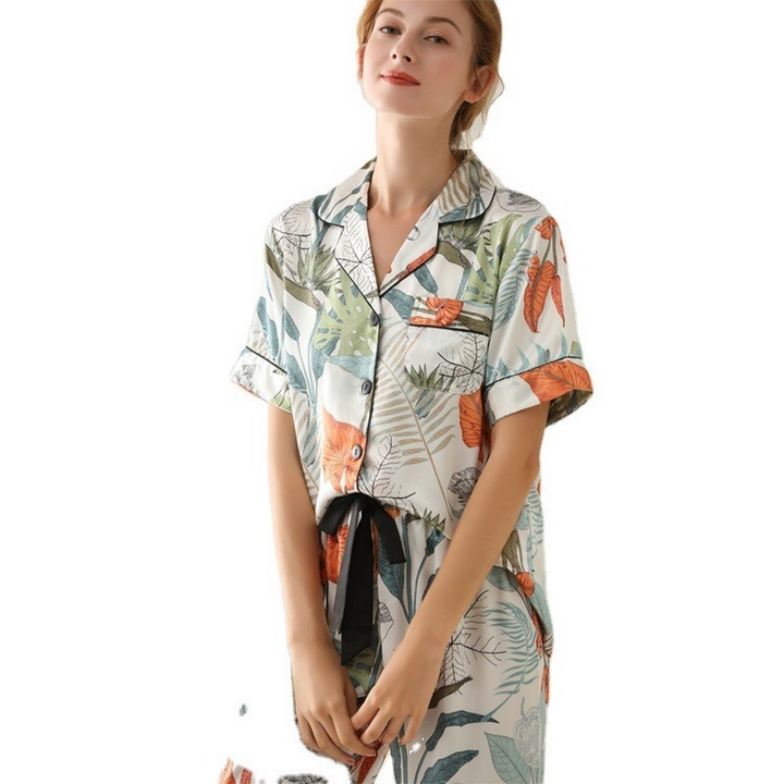 New Pajamas Leaf Printed Summer Short Sleeve Loose Pajamas Suit
