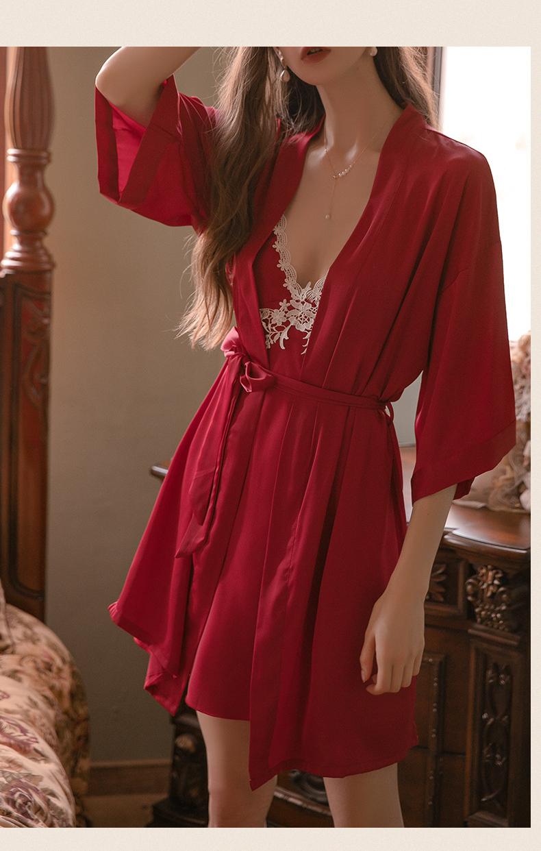 Sexy Pajamas Ice Ribbon Chest Pad Lace Slip Nightdress Nightgown Suit