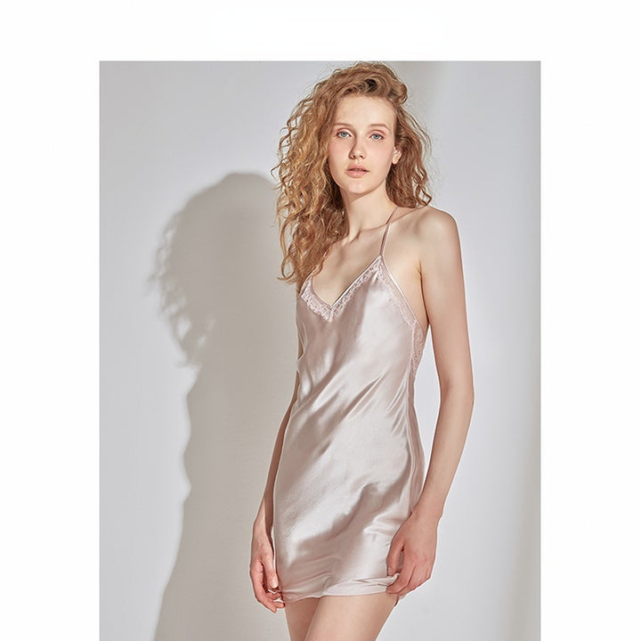 Women's Silk Slip Nightdress Sexy Backless Stitching Lace Pajamas